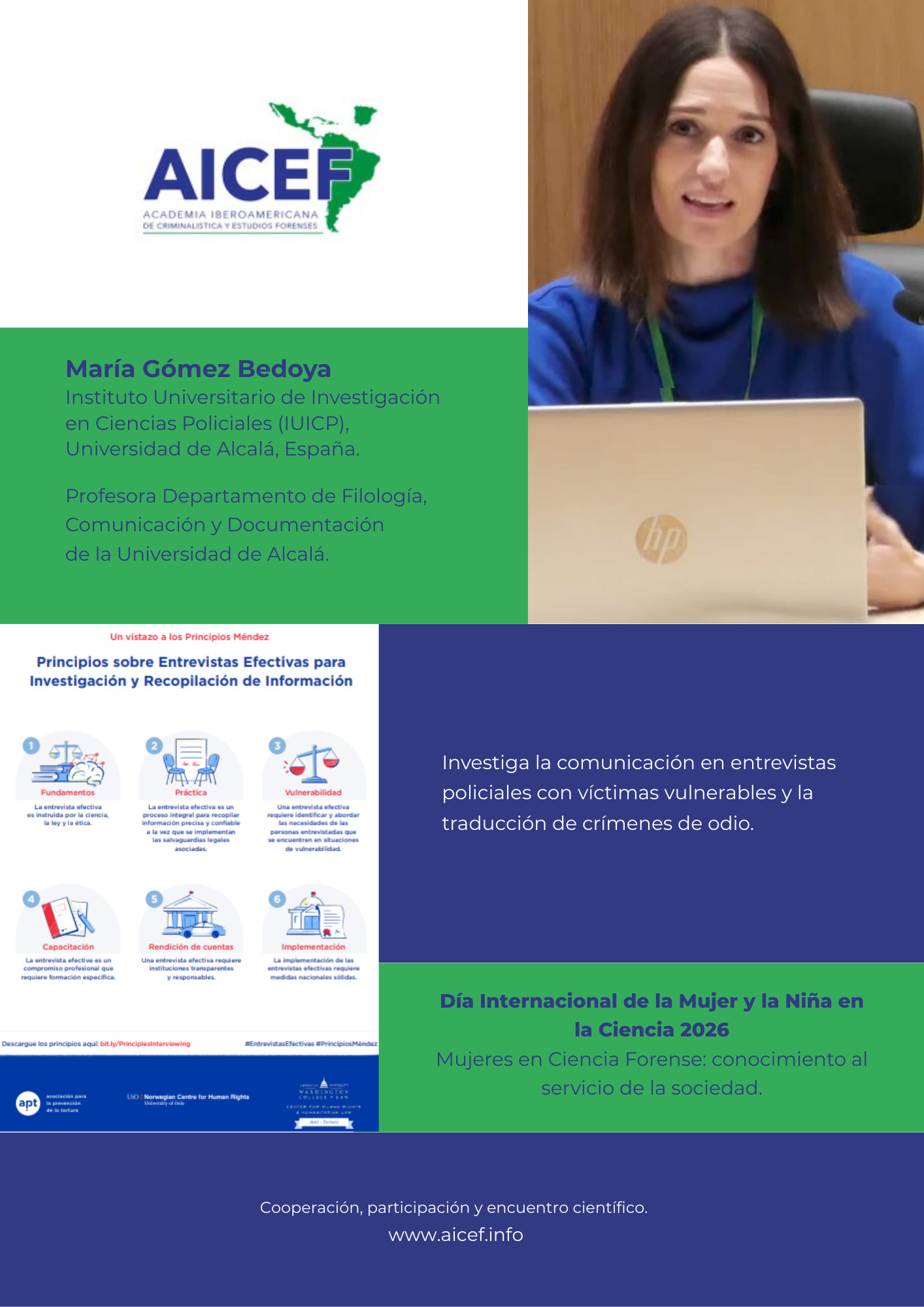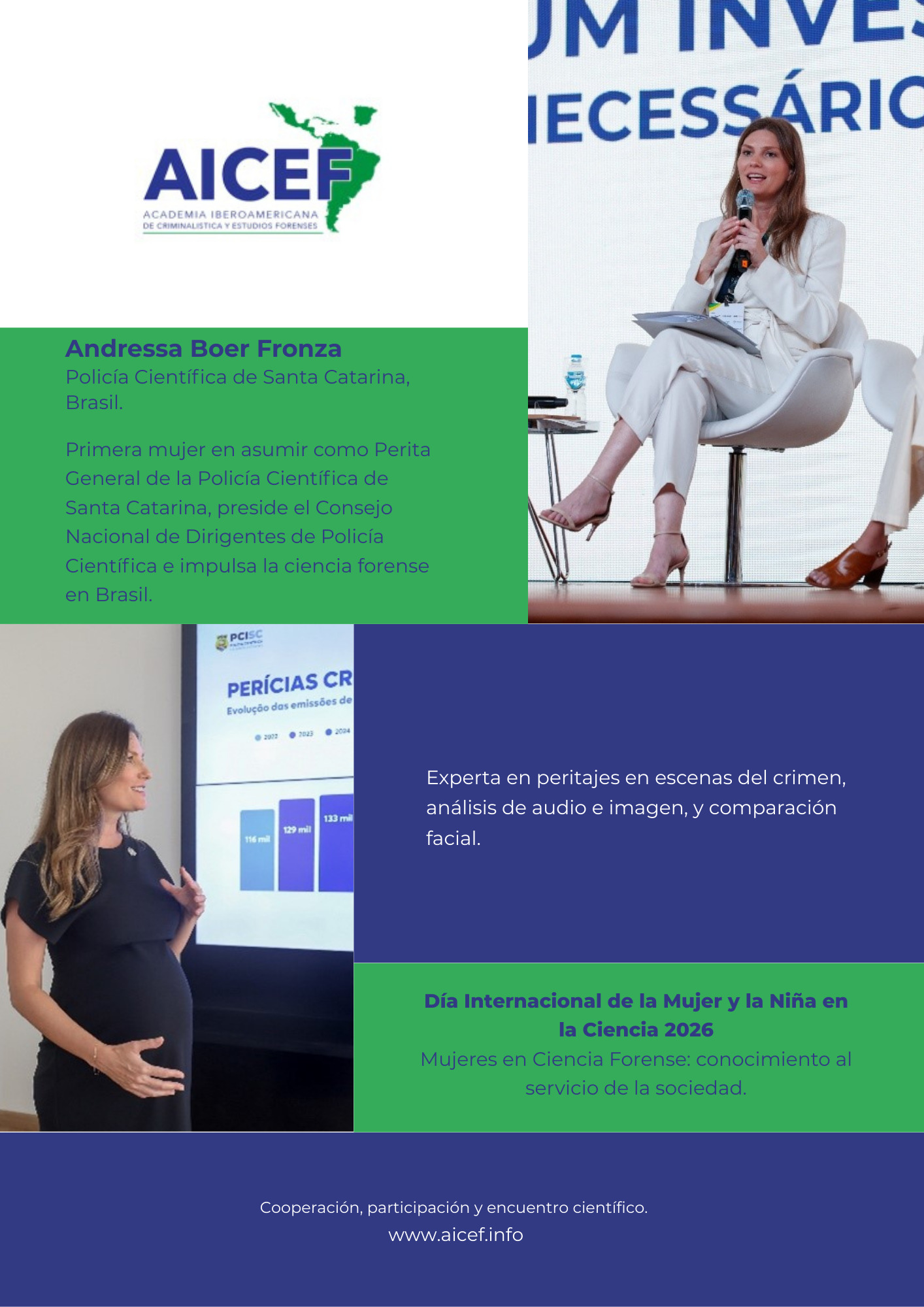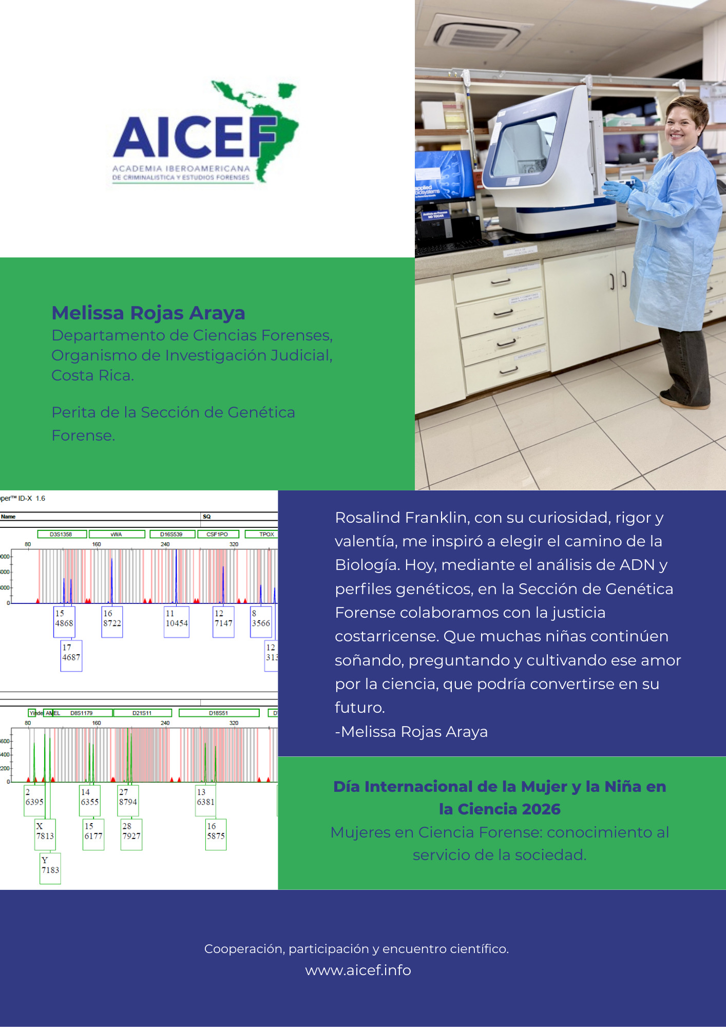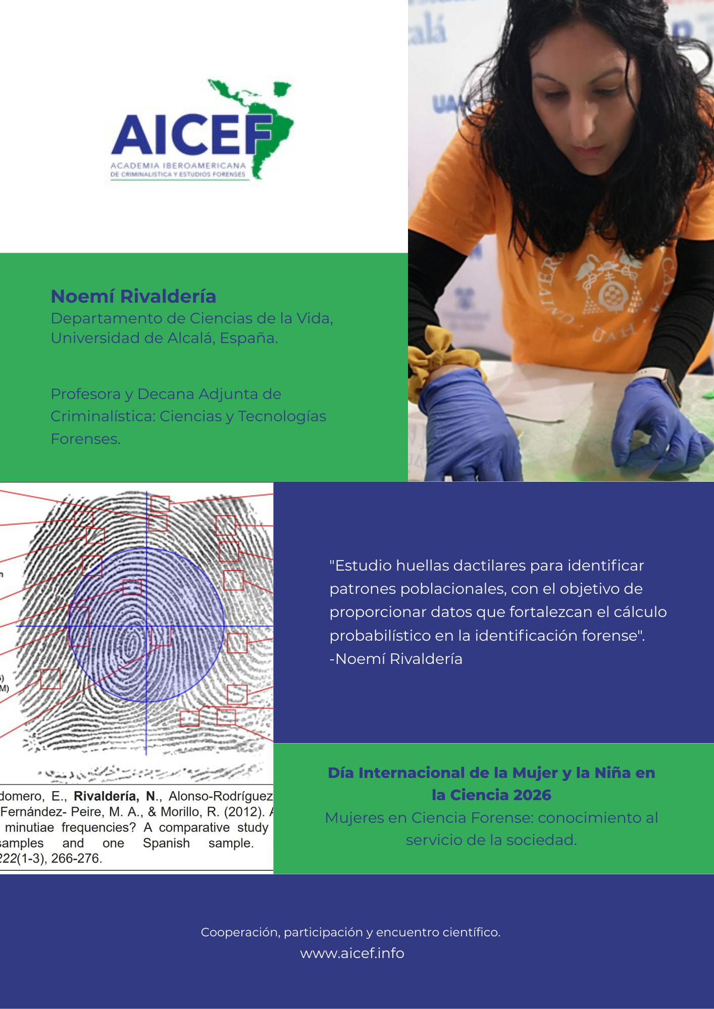 En el marco del Día Internacional de la Mujer y la Niña en la Ciencia, la Academia Iberoamericana de Criminalística y Estudios Forenses presenta esta galería para visibilizar el aporte de mujeres en la ciencia forense al servicio de la sociedad.